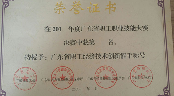 4個廳聯合頒發的“廣東省職工經濟技術創新能手“證書模板
