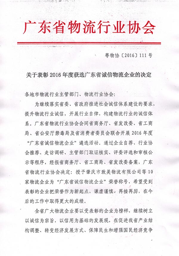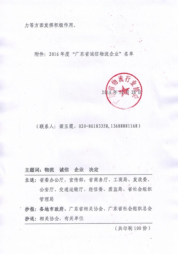 附件:2016年度“廣東省誠信物流企業(yè)”名單