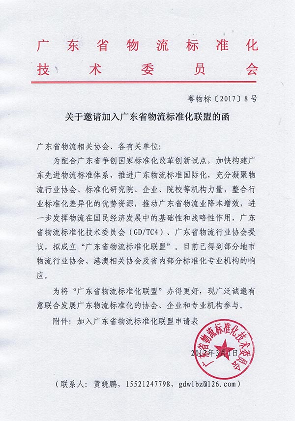 附件:加入廣東省物流標準化聯盟申請表