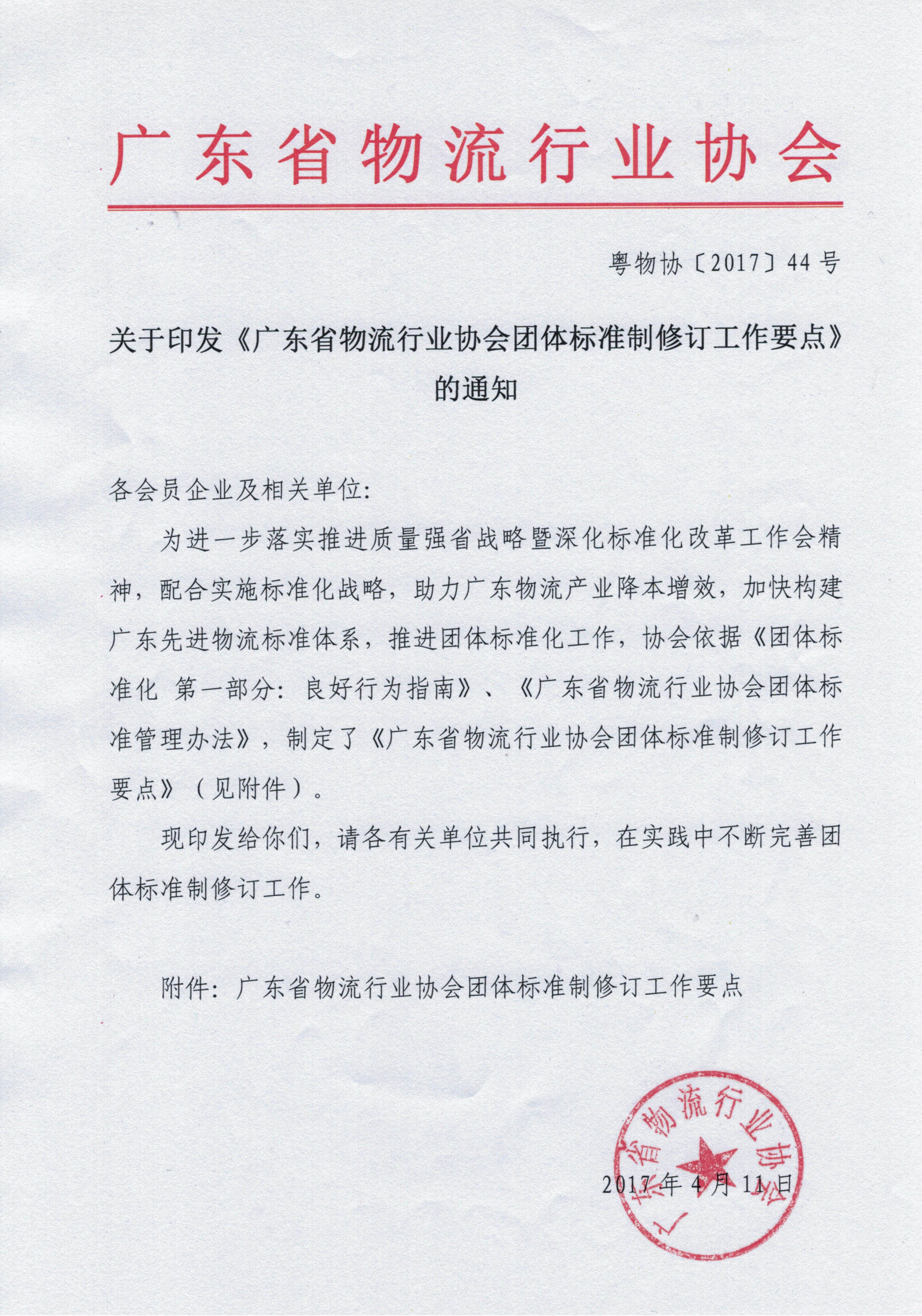 附件:廣東省物流行業協會團體標準制修訂工作要點