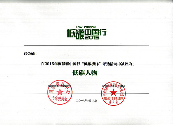 2016年6月13日,在國家發(fā)展和改革委員會應(yīng)對氣候變化司大力支持和指導(dǎo)下,2015年度低碳中國行之“低碳榜樣”發(fā)布暨頒獎典禮于綠色經(jīng)濟(jì)與應(yīng)對氣候變化國際合作會議——創(chuàng)新能力與低碳責(zé)任分論壇環(huán)節(jié)成功舉辦。廣東省物流行業(yè)協(xié)會會長單位——南方物流集團(tuán)董事長官金仙在倡導(dǎo)公眾踐行低碳環(huán)保方面表現(xiàn)優(yōu)異,榮獲“2015年度低碳中國行低碳人物獎”,本年度共有5家低碳企業(yè)、6項低碳案例、4位低碳人物脫穎而出,獲選為“年度低碳榜樣”。
