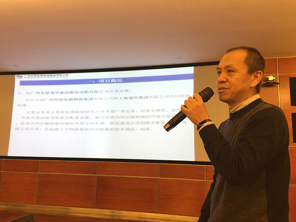其后,廣州發展能源物流集團有限公司作為修制訂標準企業代表,對其2000噸級新能源電動船研發及示范項目進行介紹,與在場的各位委員、專家就項目的標準化工作進行交流。
