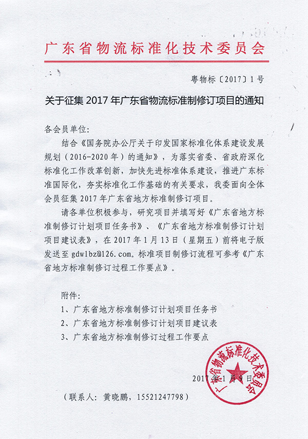 附件:1、廣東省地方標準制修訂計劃項目任務書