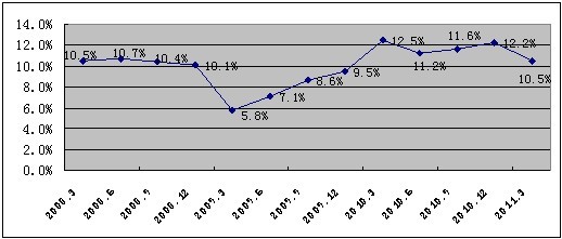 圖:2008年以來廣東GDP季度累計增長速度