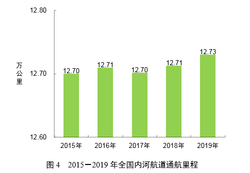 年末全國內河航道通航里程12.73萬公里,比上年增加172公里。等級航道里程6.67萬公里,占總里程52.4%,提高0.2個百分點。三級及以上航道里程1.38萬公里,占總里程10.9%,提高0.3個百分點。